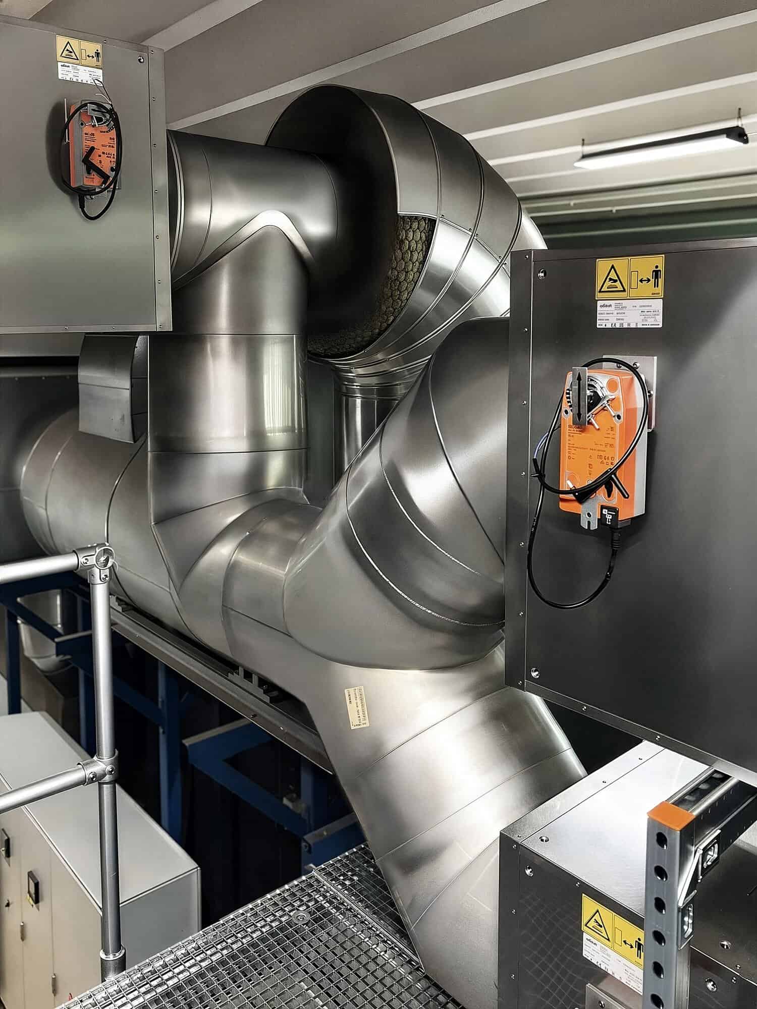 Til linje 1 hos Silgan leverede vi et komplet varmegenvindingssystem, udviklet specifikt til at udnytte det store energipotentiale i røggassen fra den termiske efterbrænder. Med udstødningstemperaturer på op til 260 °C og en luftmængde på ca. 10.000 Nm³/t var der tale om en betydelig mængde energi – perfekt til genanvendelse.